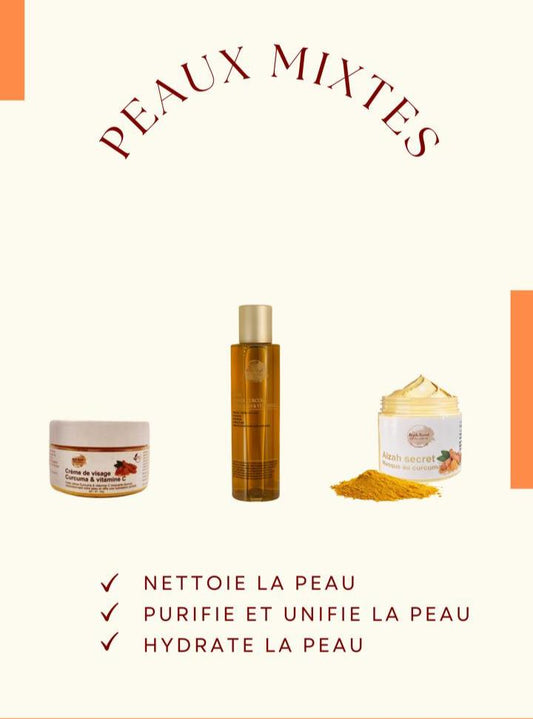 Les coffrets d’Aizah Secret réunissent des soins spécialement conçus pour répondre aux besoins uniques de chaque type de peau. Que vous ayez une peau grasse, sèche, mixte ou que vous cherchiez simplement à sublimer votre corps, nos packs sont composés d’ingrédients naturels comme le curcuma, pour offrir une solution complète et efficace. Chaque pack est un rituel de soins pensé pour hydrater, purifier et équilibrer la peau de manière ciblée.