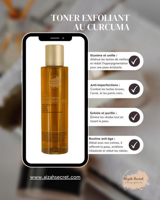Le sérum au curcuma a illuminé mon teint, j'utilise le toner exfoliant pour purifier ma peau et la crème au curcuma est parfaite pour l'hydratation !"